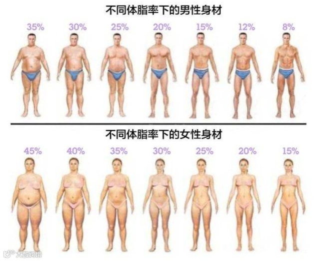 这条公式可以快速地计算出自身大致的体脂率,对比下图,可以知道自己处于什么样的身体状态。