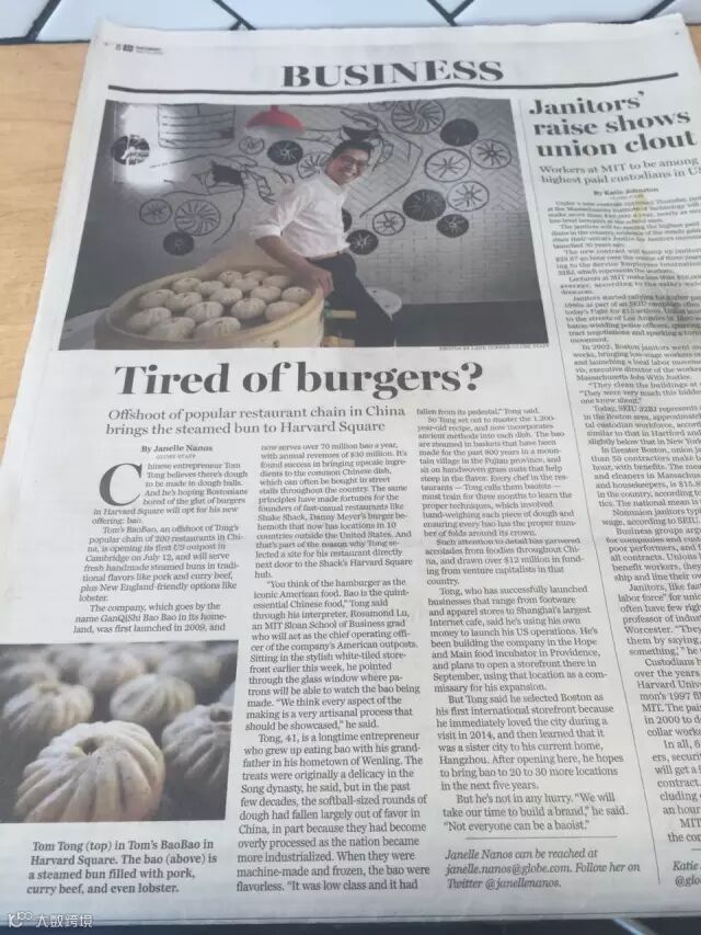 “你认为汉堡是标志性的美国食物,那么包子就是经典的中国传统食物,更是一种跨国文化的交流、沟通。”对于中国的传统美食,哈佛大学学生和当地居民非常感兴趣。除了新鲜感之外,“甘其食”的模式非常重要!