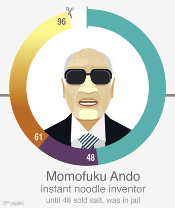 安藤百福,方便面之父。48岁之前还进过监狱,最大的成就是卖盐的。