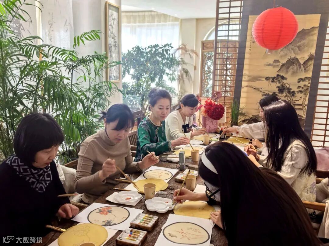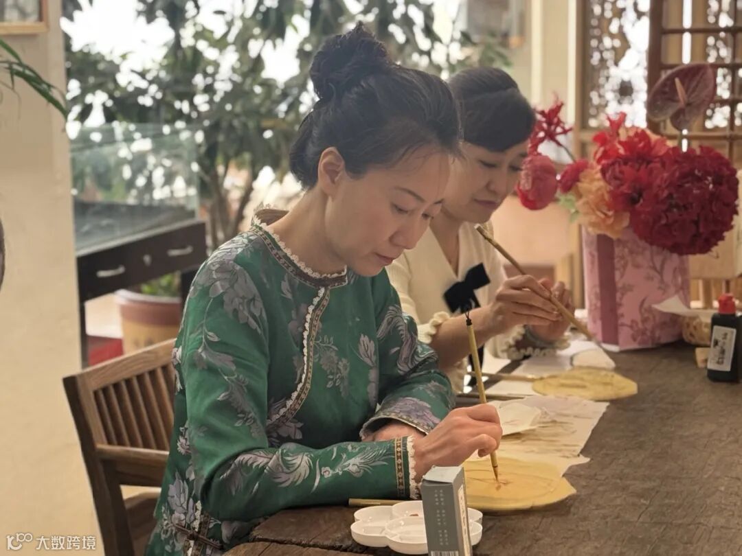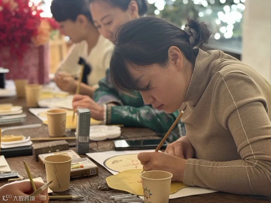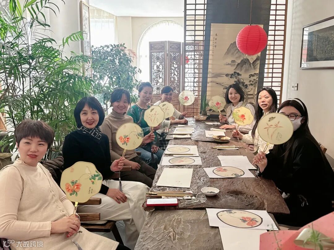 活动现场古韵悠扬,大家围坐于雅致的中式空间内,在专业老师的指导下提笔蘸墨、静心创作。大家以工笔画鸟为主题,从勾勒线条到晕染色彩,从细节描摹到整体成型,一笔一画尽显匠心巧思。须臾之间,扇面上的花鸟灵动雅致、栩栩如生,传统非遗文化与巾帼才情完美交融,一把把精美的团扇在手中徐徐绽放,成为独属于节日的艺术印记。