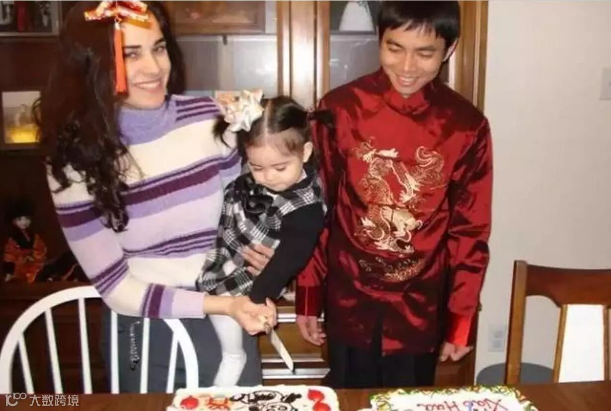 因为在9年前,他跟比他小9岁的美国高学历女大学生结婚,并拥有了一个混血女娃!