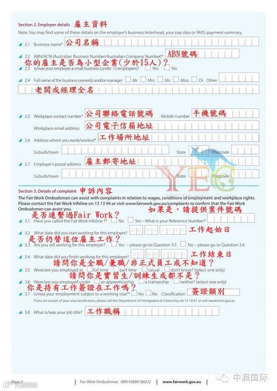 如果和雇主交涉后问题仍未能解决或无法沟通,你可以填写申诉书向 FWO提出申诉。最好一并准备证据和资料,包含薪资表(Pay slips)、工作时数(Records of hours you worked)或其他相关证明。