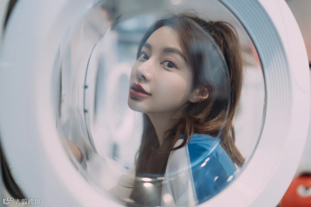 第三张照片,我想要用肖像展现模特的高颜值。如果只是单纯拍摄肖像特写,好像又普通了一些。这里我利用洗衣桶的门做前景,圆形边框的包围,很好的引导视觉到模特的脸上。加上透明塑料上的倒影,提升了照片的趣味性。