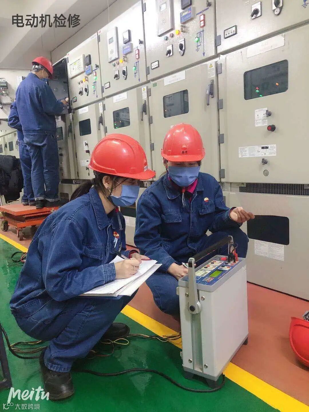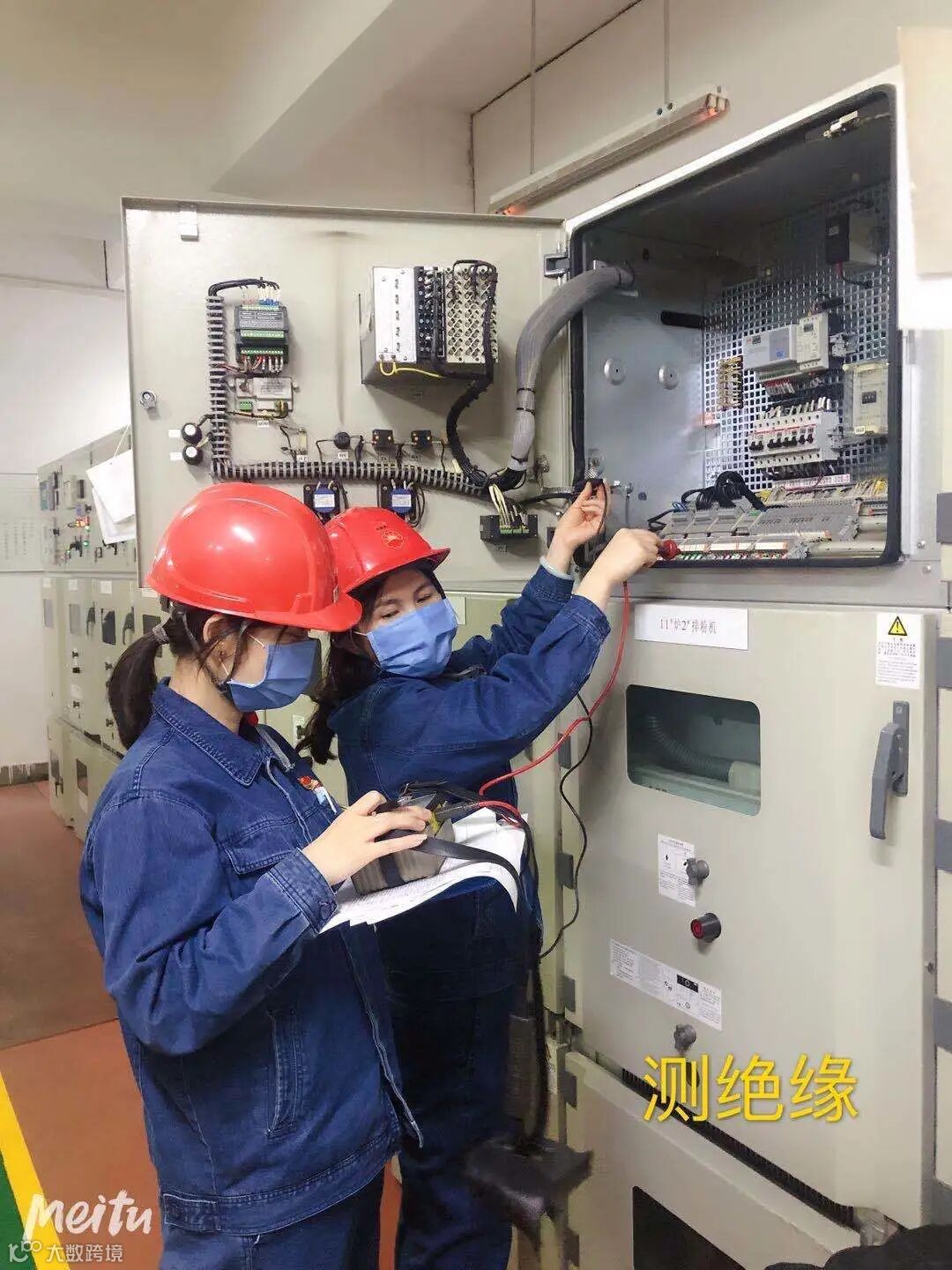 继电班女工在疫情期间有检修任务时及时对检修设备进行检查,为设备平稳运行、安全生产提供保障。