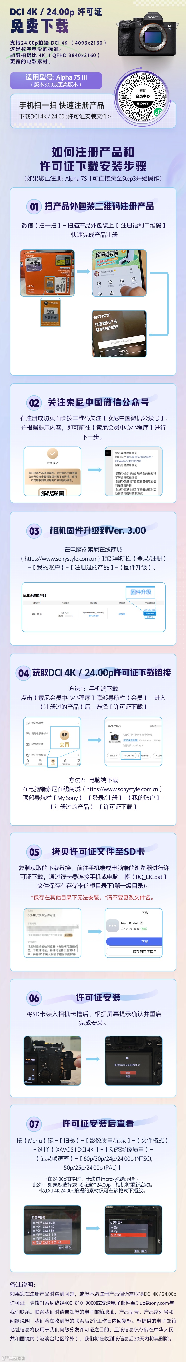 潍坊恒盛达商贸有限公司2024年3月28日,索尼正式开放全画幅微单™视频旗舰相机Alpha 7S III的 DCI 4K / 24.00p免费许可证下载.