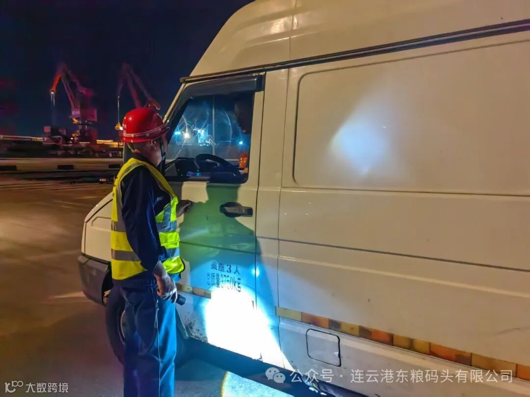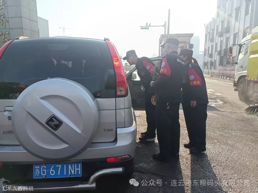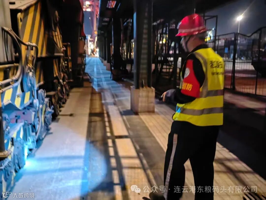 卡口管控“严把关”,守牢安全第一防线。在人员与车辆管理方面,东粮公司联合新陆桥公司严格落实“双查双核”机制。进港卡口双人在岗值守,对进入码头及作业现场的车辆逐一核查进出港手续合法性,对随车物品进行细致检查,杜绝违禁物品流入。针对外来人员,严格执行身份登记与轨迹追踪制度,发现闲杂人员立即劝离,对可疑人员实施重点盘查并上报。如遇突发事件,现场人员将第一时间启动应急预案,保护现场并联动公安、边检、海关、交通等口岸部门协同处置,确保事态可控。