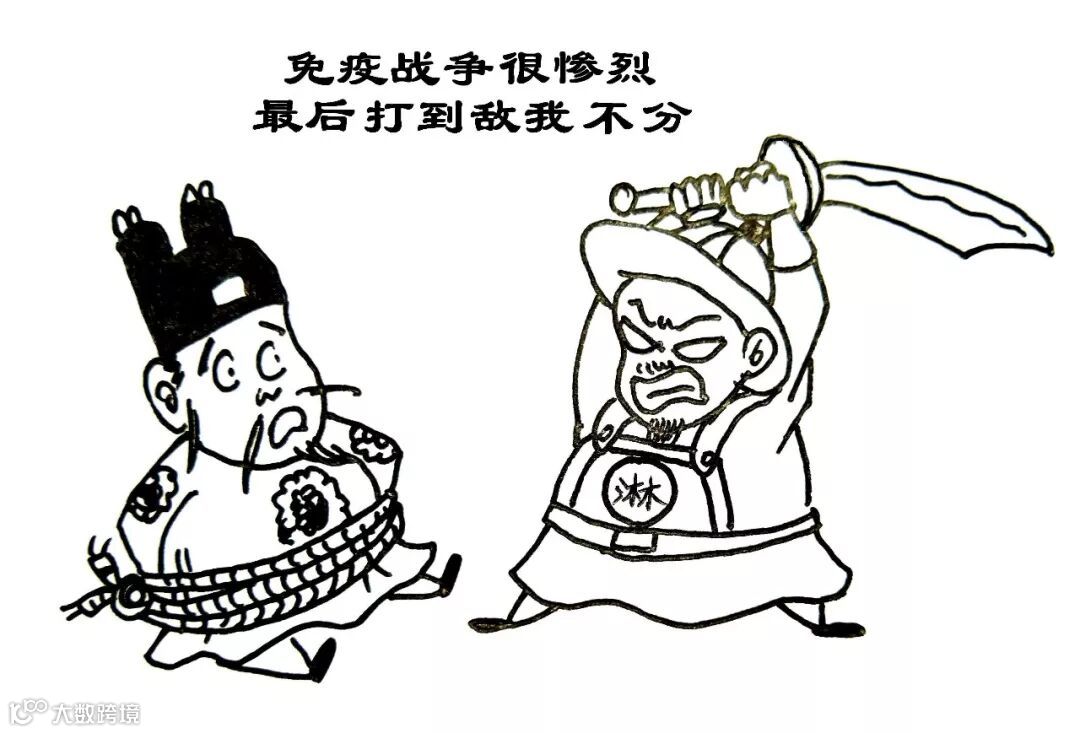 最后,免疫系统又会“杀红了眼”,将健康细胞也杀死,人体最终被自己的免疫系统打败。(当年面对SARS病毒,因为没有特效药,只能采用抑制自身免疫系统的办法。但抑制过多又会使病毒蔓延,很难控制平衡点。)