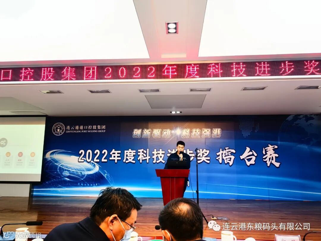 1月14日下午,港口控股集团召开了2022年度科技进步奖擂台赛,公司副总贺成旭带领公司科技研发小组参加比赛。