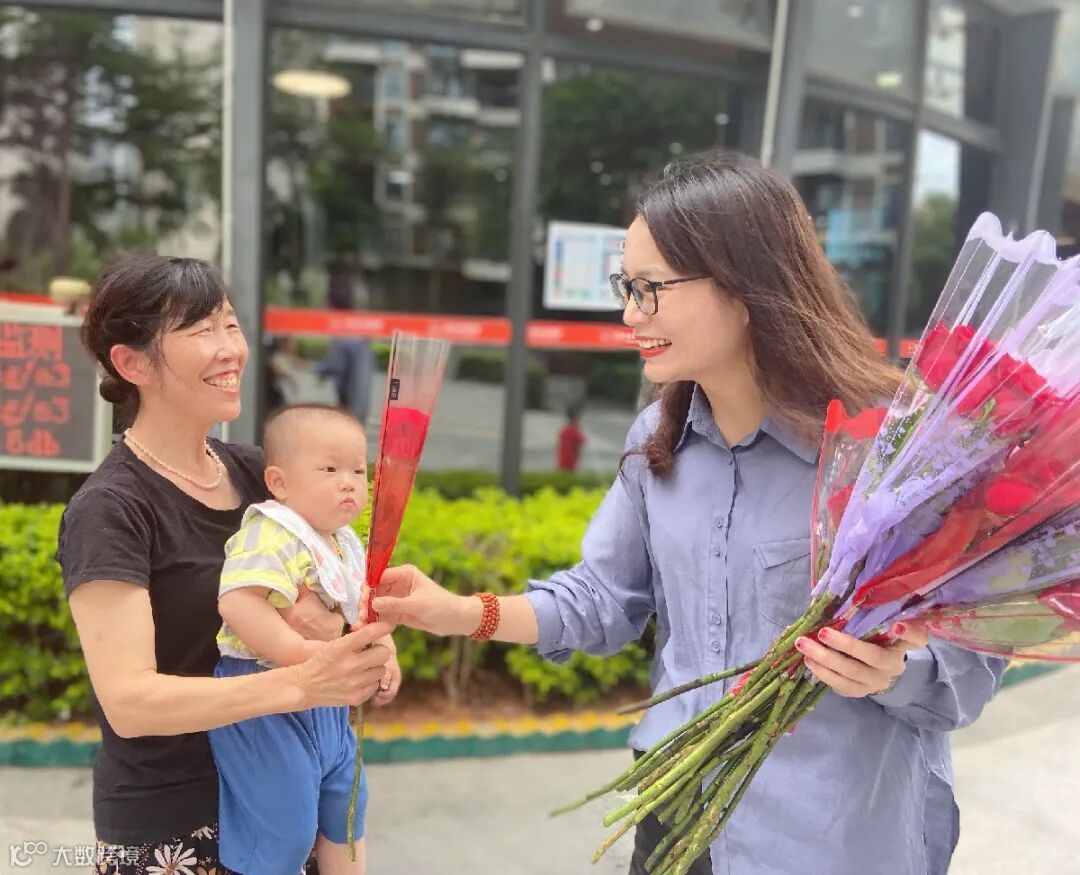“祝您母亲节快乐!”物业服务中心工作人员将鲜花送到妈妈们的手中,同时送上诚挚的祝福。