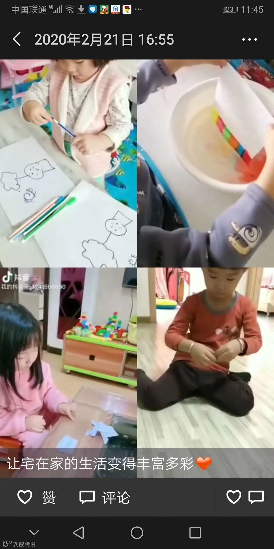 幼儿园将每天的活动通过微信和抖音的形式进行转发,在幼儿园、教师、家长、孩子共同努力下,停课不停学收到了良好效果,受到了家长的热烈欢迎。