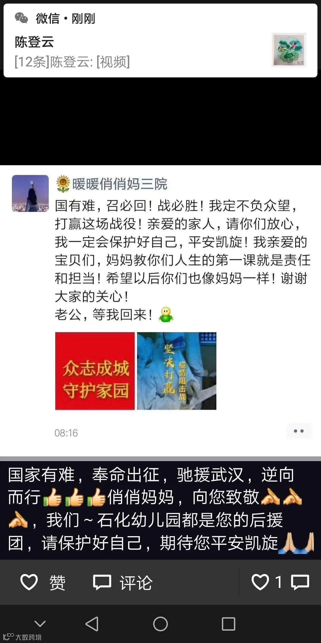 陪伴是家长最长情的告白。幼儿园魏心湉小朋友的妈妈是东洲三院的医护人员,她奔赴武汉救护前沿,留下了家中2个年幼的孩子。园所在得知情况后,及时联系魏心湉的爸爸,提出家中孩子照看不过来时,班里的教师、保育可以到家中帮忙,幼儿园管理人员也可轮流去家中照看孩子。园长王金娜表示:“疫情面前,魏心湉妈妈能舍小家为大家,就让我们来守护你的家”。党支部积极献爱心,为魏心湉小宝宝送去了玩具,使宝宝在家不孤单。