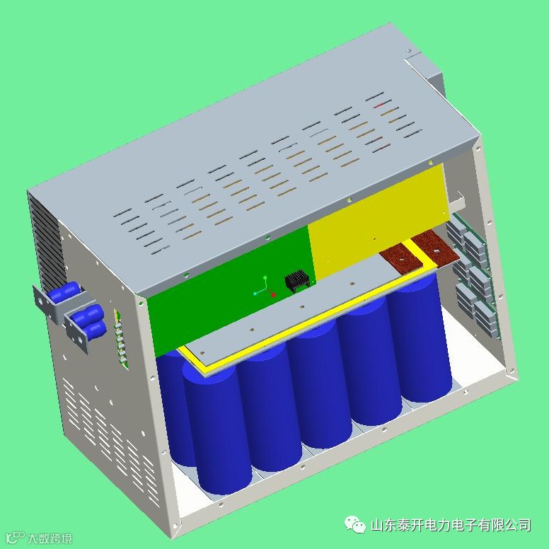 功率柜采用抽屉式结构设计,结构紧凑,便于安装;对装置整体发热进行估算,设计有专门风道,合理选取散热风量