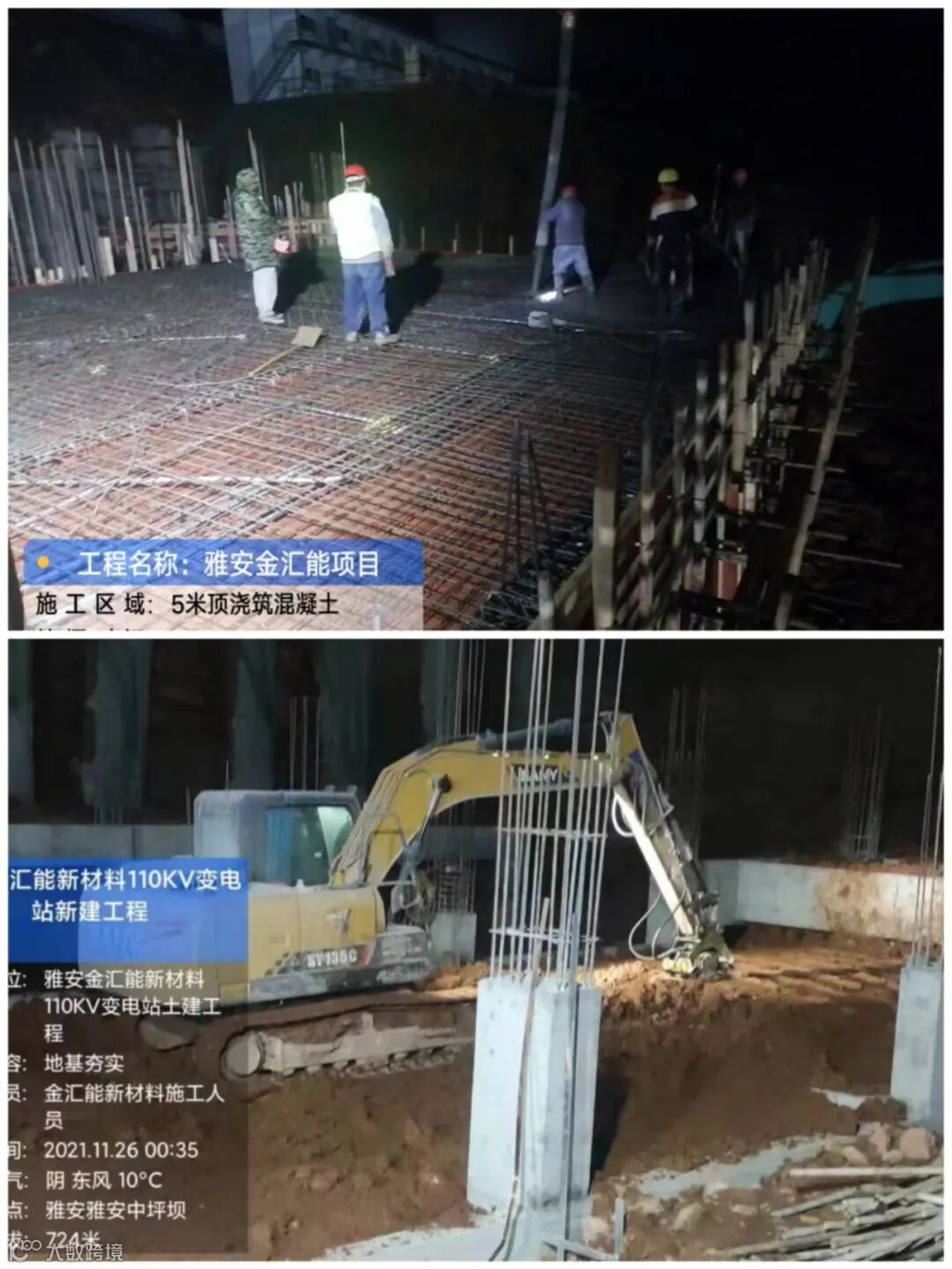 2021年11月1日,雅安金汇能110kV变电站工程项目在四川省雅安市天全县始阳镇正式启动。由于项目工期短,时间紧任务重,泰开送变电公司雅安金汇能项目部灵活有序调整施工作业机械和施工人员的工作时间,项目经理王凯带领团队连夜奋战,每天平均工作14小时,次天所有人员7点准时到达施工现场进行施工,每天施工结束后还要召集主要负责人复盘当天工作,部署次日工作计划和目标。