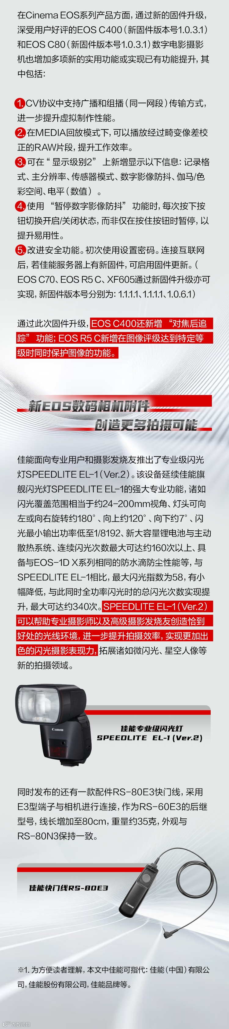 佳能为EOS/PowerShot/Cinema EOS等多款产品提供固件升级