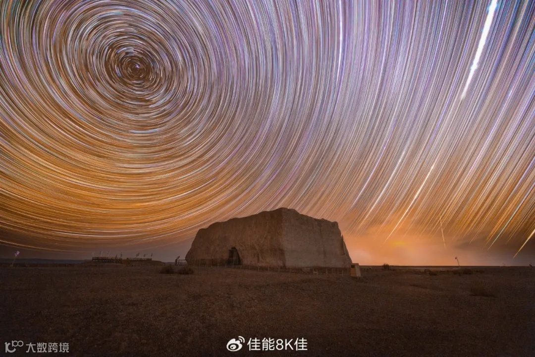 敦煌玉门关的深夜是星空的主场,这里几乎没有任何光害,是星空摄影师的天堂。夜色下星空照耀着玉门关遗址,在宽广的场景下我利用15㎜焦段拍摄玉门关星轨,弱光环境下佳能EOS R5依然能展现出优秀的画质。多张堆栈下的星河展现出炫彩的星轨,玉门关在星轨的衬托下,更加古朴庄重。