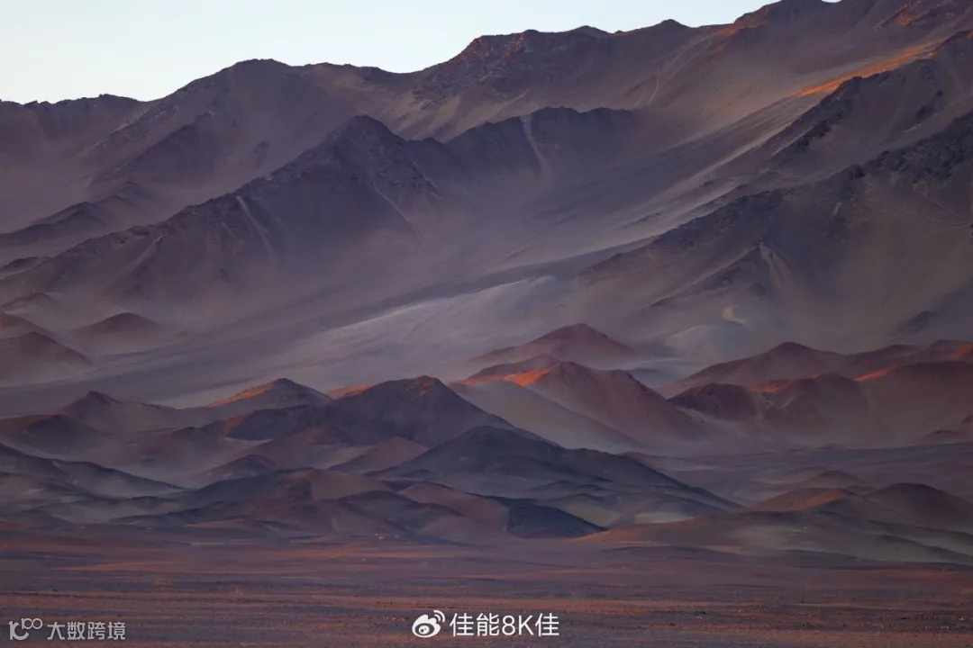 在日落时分的戈壁中,远处山脉如同一幅画卷,整个山脉的颜色变得更加丰富,我利用200mm拍到了局部的画面,山体的颜色绚丽多彩,好似画家在这里作画一般。佳能EOS R5约4500万的高像素的优势在此刻便更加突显,二次裁切后依然能得到非常优秀的画质。