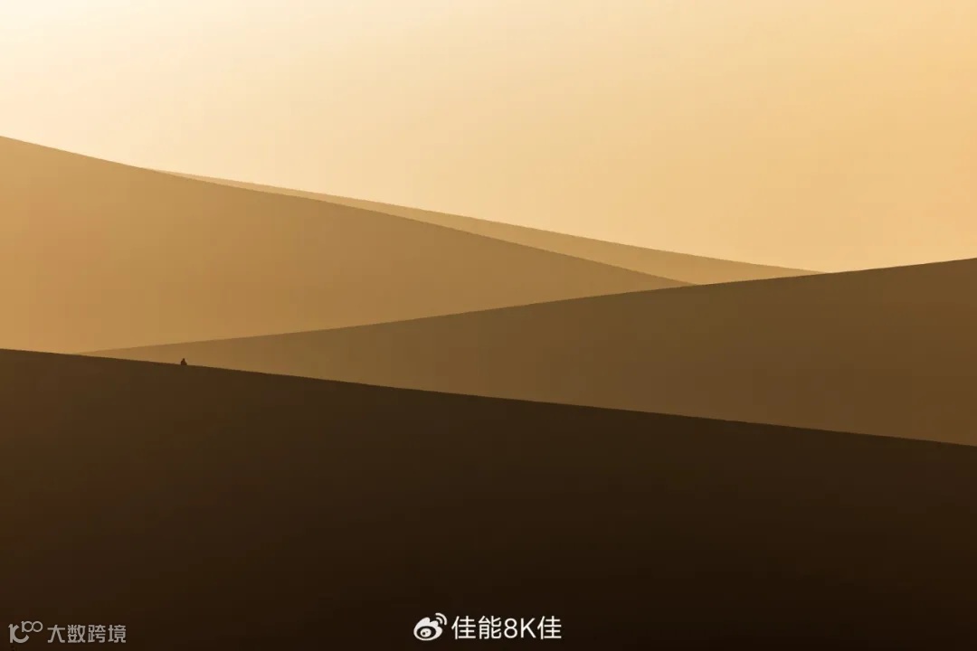 在广袤无垠的沙漠中,风像是一位无形的艺术家,用它那看不见的刻刀精心雕琢出极具线条感的画卷。沙丘的轮廓如波浪般起伏,再有一位游客静坐其中,如同一颗遗落的明珠,与这广阔的沙漠相互映衬。