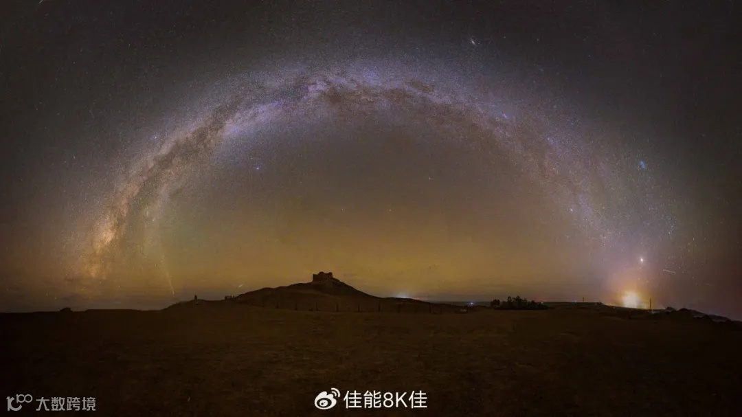 入夜后的阳关星空,清澈得让人害怕。没有城市的霓虹喧嚣,没有尘世的纷扰污浊,每一颗星星都如同刚从深海中捞起的珍珠,纯粹而明亮。银河一旁绚丽的紫金山彗星依然清晰可见,银河与彗星在此刻同框,能感受生命在浩瀚宇宙前的渺小与伟大。15mm的超广视角下让银拱拼接更加方便,画面也更加绚丽多姿。