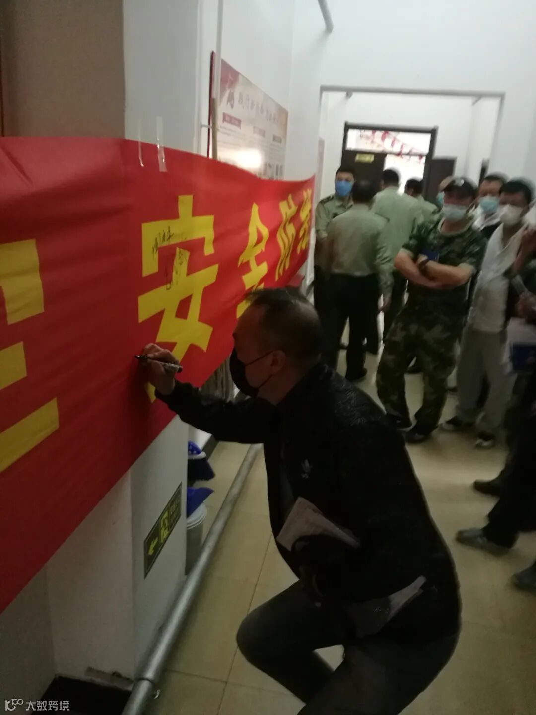 该队还组织带领员工,在“消除事故隐患,筑牢安全防线”安全月主题条幅上签字,该队大队长带头做出安全承诺。