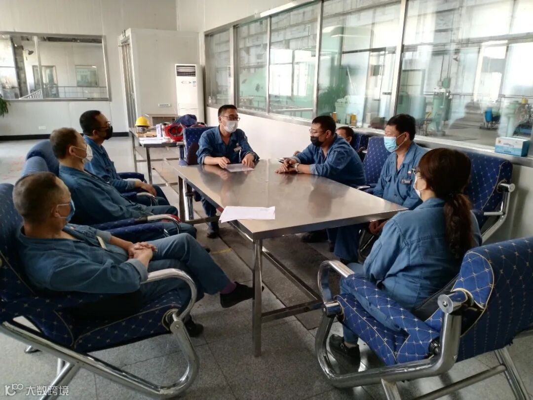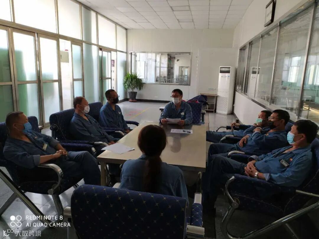 车间利用调度会时间,对新老厂所有管理人员进行培训。车间领导在分享管理经验基础上,对大家提出生产问题,要求每一名管理人员发表各自的意见。