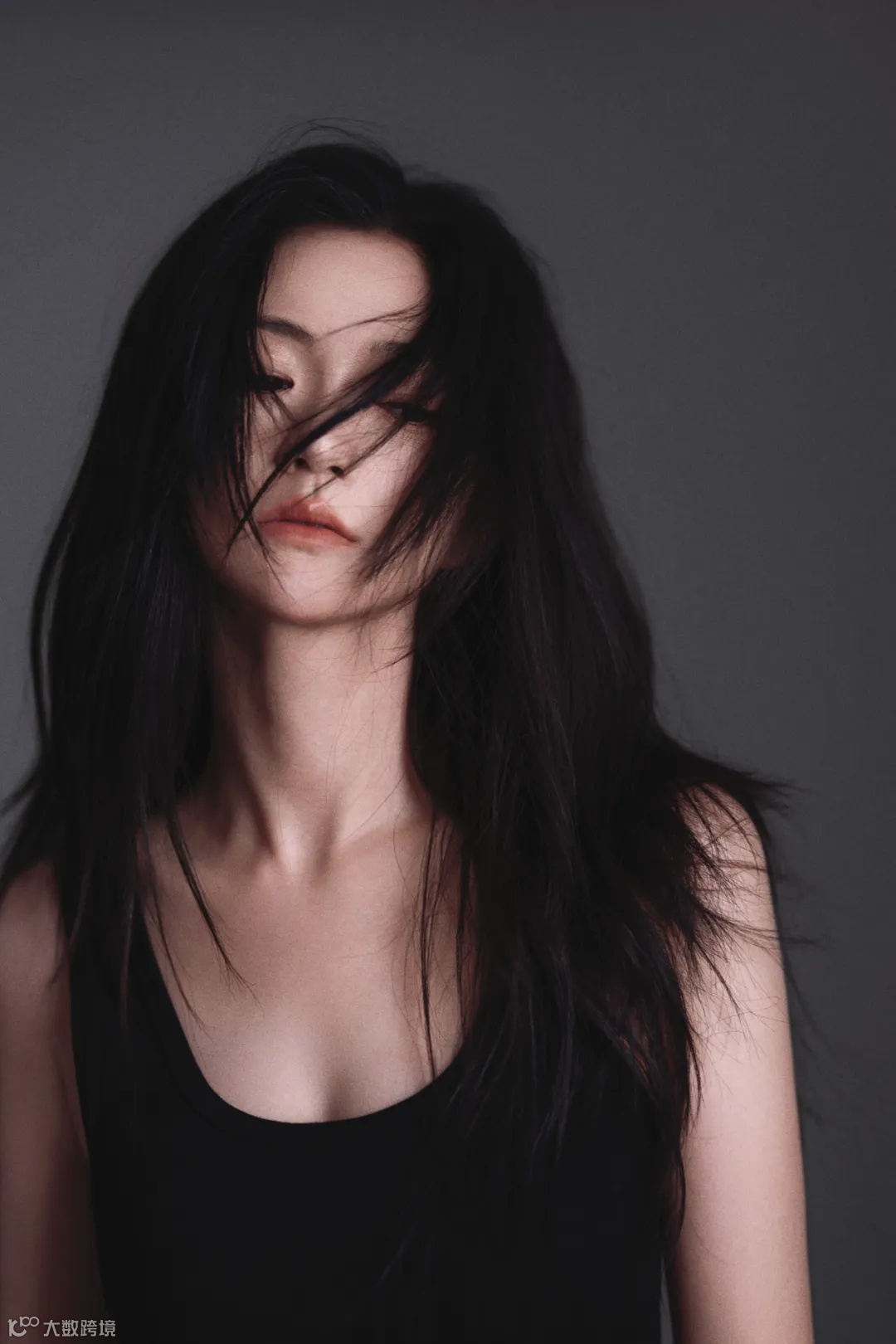 在光线的运用上,我使用了闪光灯在侧面补光,将背景色控制在黑与灰的过度之间,让发丝边缘的细节同样明显。配合大光圈镜头进行拍摄,突出模特肌肤色彩及整体情绪表现力,也让成像更柔和。