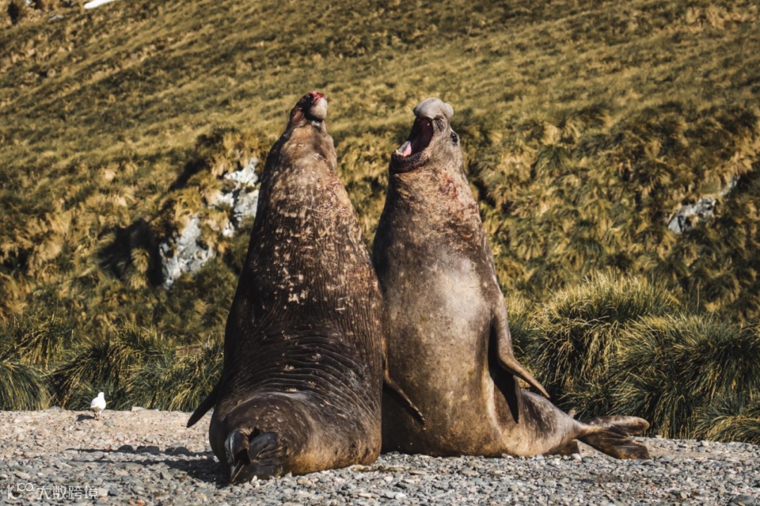 南乔治亚岛库珀湾 为领地战斗的成年雄性象海豹