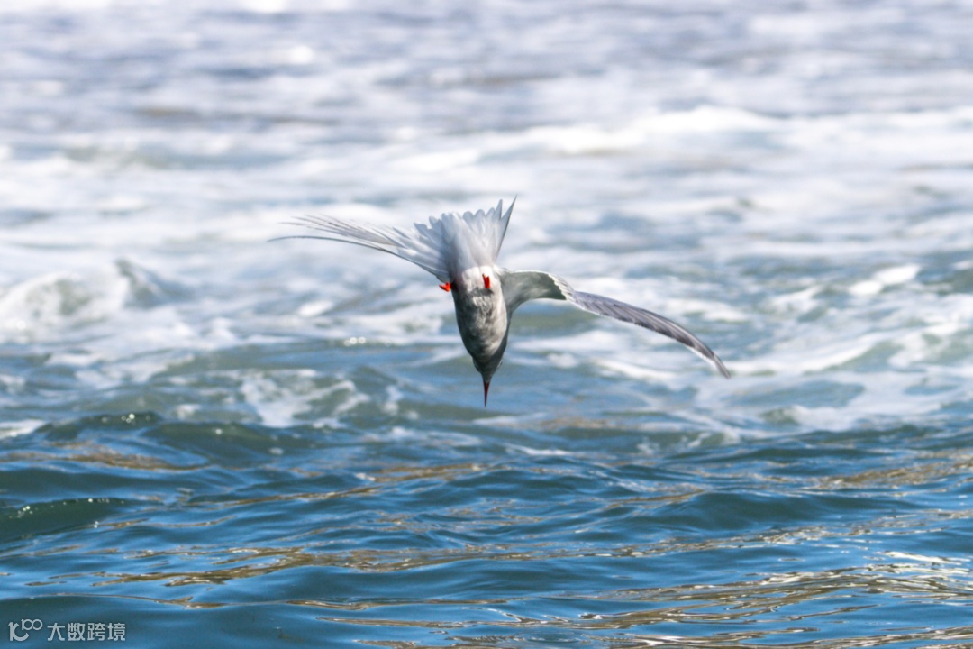 南乔治亚岛库珀湾 扎向海面的南极燕鸥