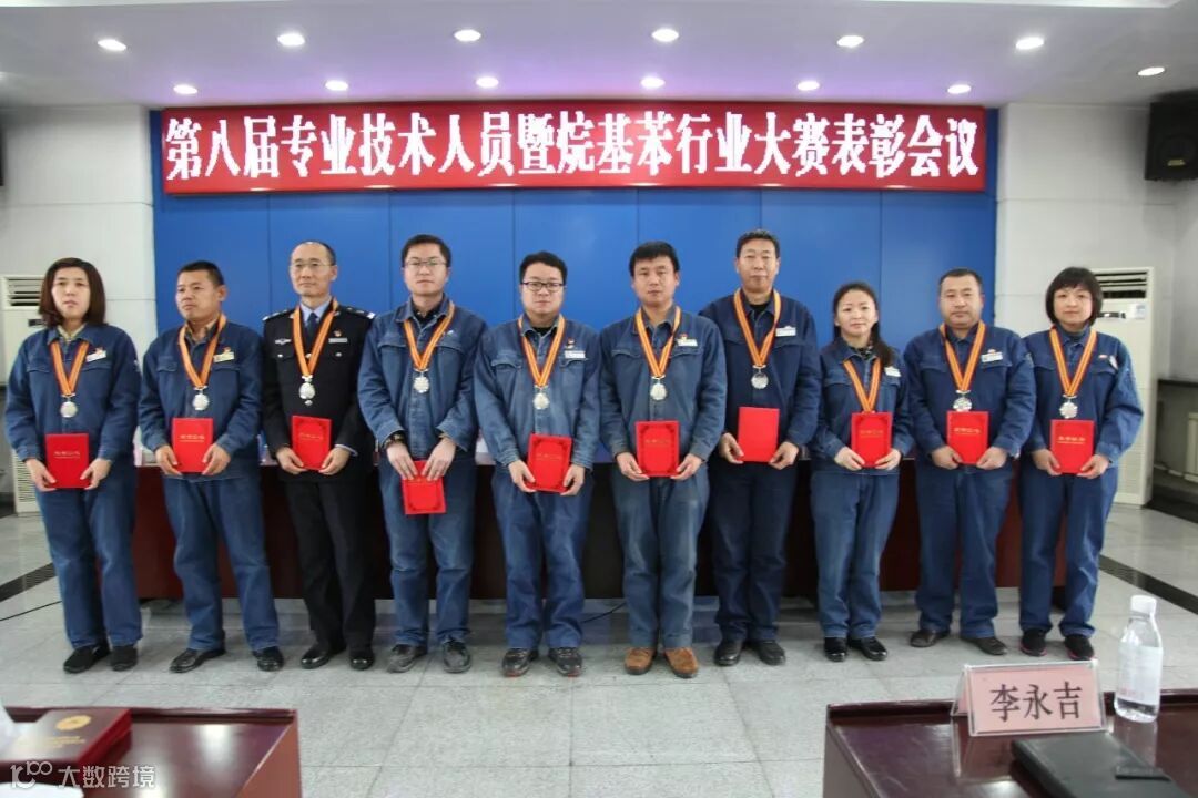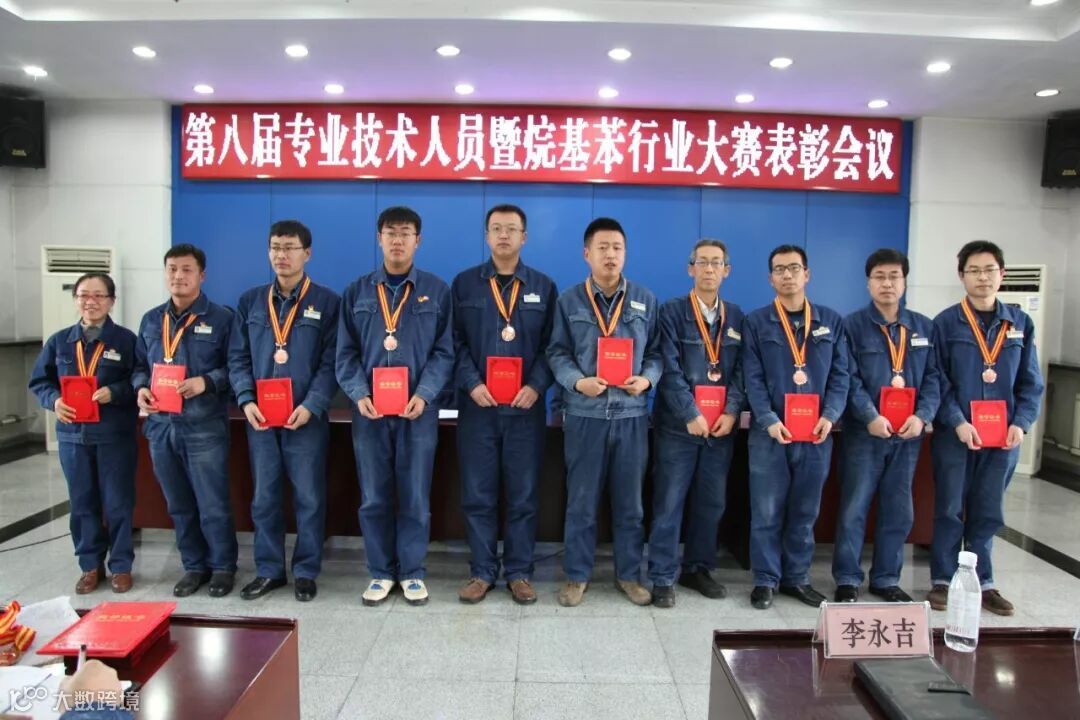 图为在烷基苯行业技能对抗赛中获得金、银、铜牌的选手