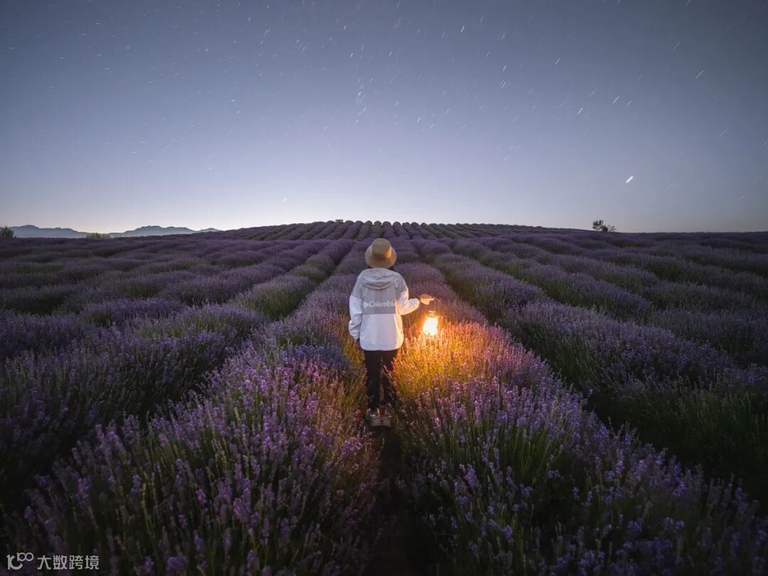 这张作品拍摄于新疆霍城县的薰衣草园里,那晚我们在这里拍摄了一个通宵。星空下我们同行的小伙伴提着灯在薰衣草园里做模特。这个季节的薰衣草是最漂亮的,夜晚空气里充满薰衣草花香,由于有催眠的作用,所以整晚有种半梦半醒的感觉,仿佛是一场梦。