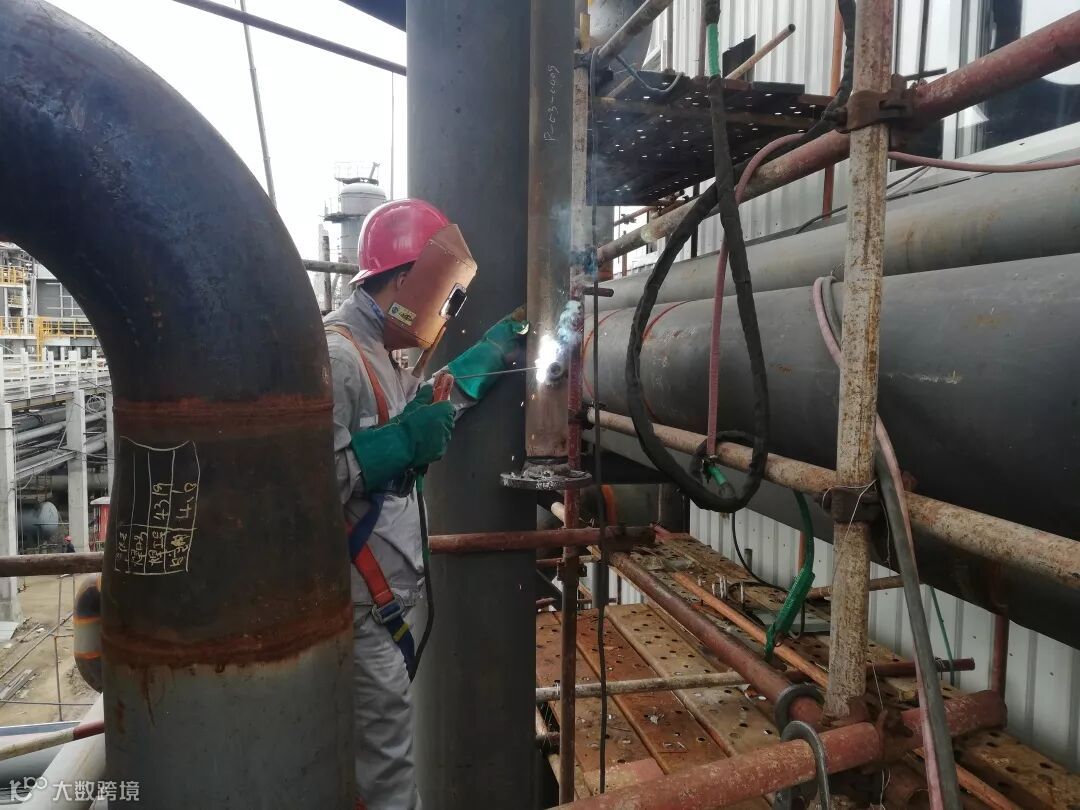 自3月改造工程全面进入设备安装攻坚阶段以来,工建二公司全体参战干部员工团结一心,众志成城,放弃了所有节假日,坚持早七晚七加班加点,进入8月份,全体员工更是早七晚九连续加班夜战,5个月内实现了“无缝衔接”。施工最艰难的时期应属夏季高温的二个月时间,380名干部员工迎烈日、战骄阳、斗酷暑,在室外30多度的高温下,在连续多雨的季节里,经常是汗流浃背、浑身湿透。由于施工现场管线纵横交错,高低错落,有的在高空7、8米,有的仅离地面几十公分,焊接位置十分受限,焊工要么跨在滚烫的管线上,要么趴在狭窄的地面上,小心翼翼施焊,火花随时朝脸上“扑来”,热度直达面罩,汗水淌进双眼,模糊了视线,但他们坚持到底,不言放弃。电工、仪表两个车间的上万米的线缆敷设都要曝露在室外,桥架上、线缆沟内,似火的骄阳下,留下了他们紧张而又繁忙的身影。进入8月下旬,施工项目进入关键阶段,工建二公司5名领导班子成员、6名科室科长轮流值班下现场,与员工一同“早7晚9”大干夜战,随时协调解决现场发生的各类问题。