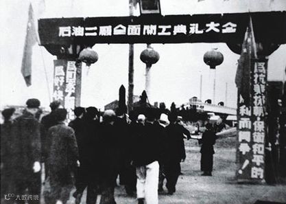 1949年,石油二厂全面恢复开工典礼大会。