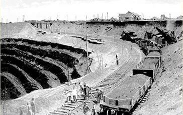 开采西露天矿顶层页岩,图中上方为千金寨市街