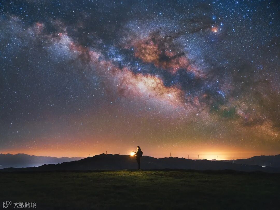 这是在桂林十里平坦拍摄的夏季银河。当天到达拍摄目的地的时候天上还有非常多的云,山顶上也是雾气弥漫,等到夜深之后云雾开始慢慢散去,天空也变得无比通透。风电站山顶上的风非常大,我顶着狂风硬是在镜头前站了30秒没有动,拍下了这张与夏季银河合影的照片。