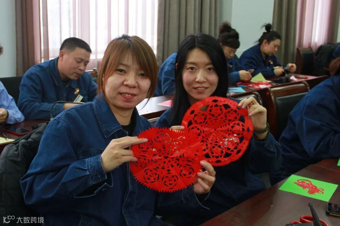 课堂上,员工们纷纷拿起了剪刀,按照张老所传授的口诀,一一动手操作,眨眼间,一件件剪纸作品大功告成。