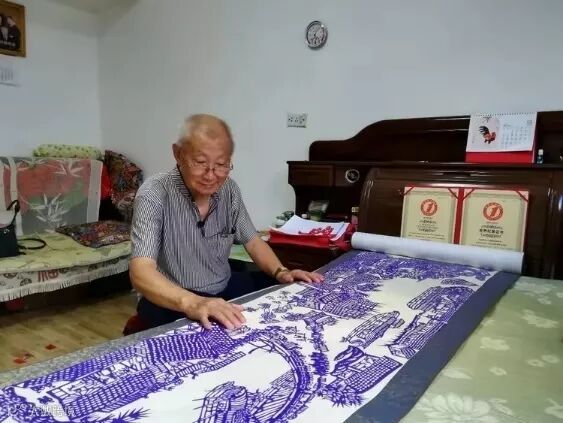 张长友老人今年81岁,是抚顺石化公司石油一厂一名退休干部。张老自幼酷爱美术,喜欢剪纸艺术,到目前从事剪纸艺术已61年。张老创立了“剪纸口诀”,2012年,他历时7个月创作的《中国古典名著百米长卷》人物剪纸组合画,获英国伦敦世界纪录协会颁发的《世界纪录证书》,他的《清明上河图》,《富春山居图》更是抒发了对祖国传统文化的热爱。张老2010年被评为了抚顺市非遗剪纸继承人,现为抚顺市民间艺术家剪纸协会副会长。