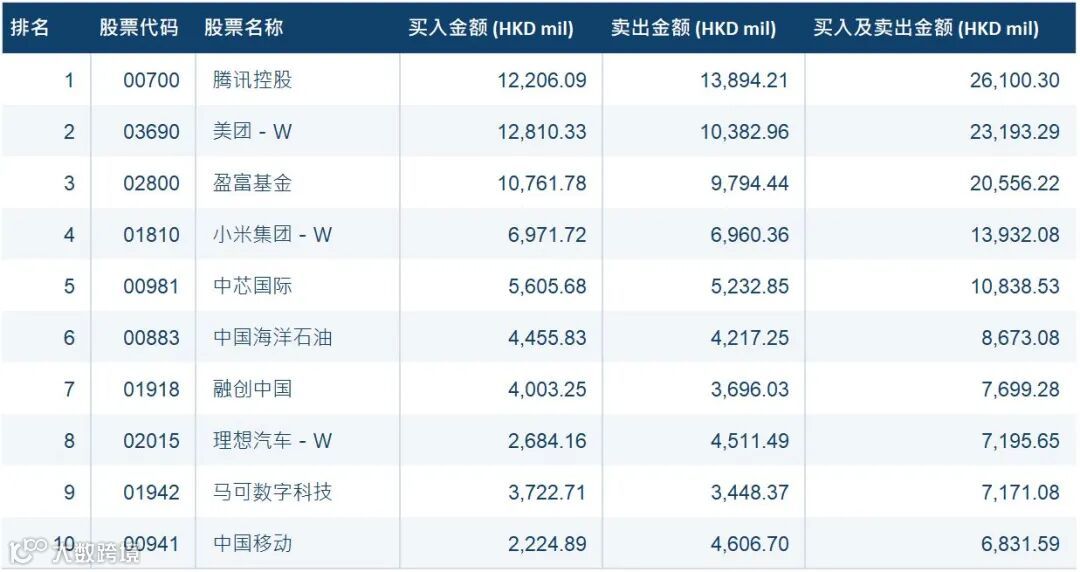 港股通(深)十大成交活跃股