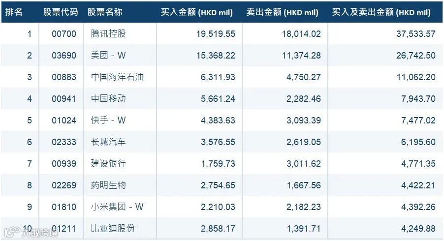 港股通(深) 十大成交活跃股
