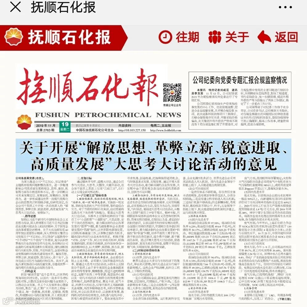 2019年11月,抚顺石化在炼化版块效益排名由去年的“领头羊”下滑至第20位,由盈转亏。