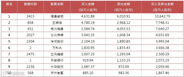 深股通十大成交活跃股