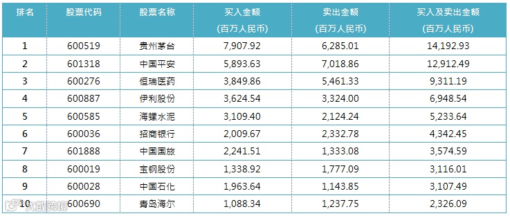 沪股通十大成交活跃股