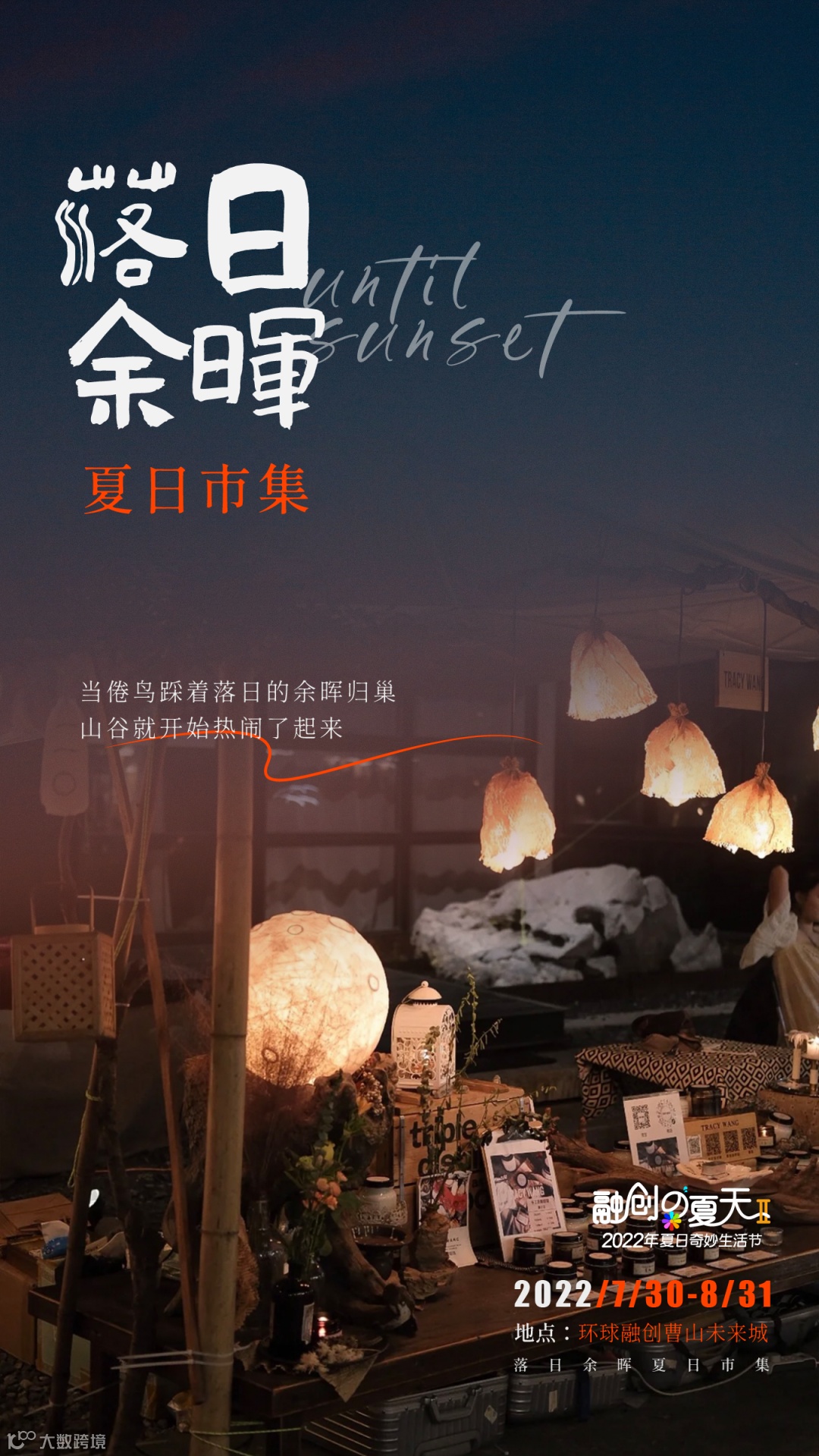 生活有了市集,无趣才有了地方消解。此刻的曹山未来城里晚风习习,我们借着落日余晖的温情与安谧,在湖山间将诗意与烟火相结合,用一场恬淡且热闹的市集,摆上满目琳琅的商品,在盛夏的夜色里,用最传统、最自由的方式,链接每一位向往理想生活的心灵。