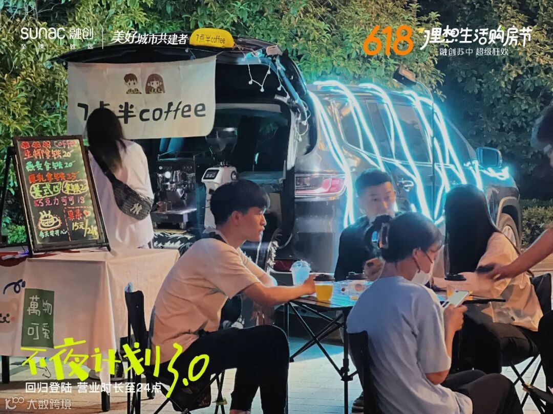 在镇江、扬州,融创首度跨界纽结咖啡,礼呈“理想生活咖”联名咖啡礼盒,用一杯醇香手冲咖啡,放慢繁忙的生活节奏;6月18日-20日,不夜计划3.0回归登陆,营业时间延长至24点,后备箱集市、露天影院、夜场掼蛋PK、盛夏限定特饮……28场邻里夜场活动,让理想与热爱,绽放于平凡又闪光的日常,为城市夜生活创造更多绚丽可能。