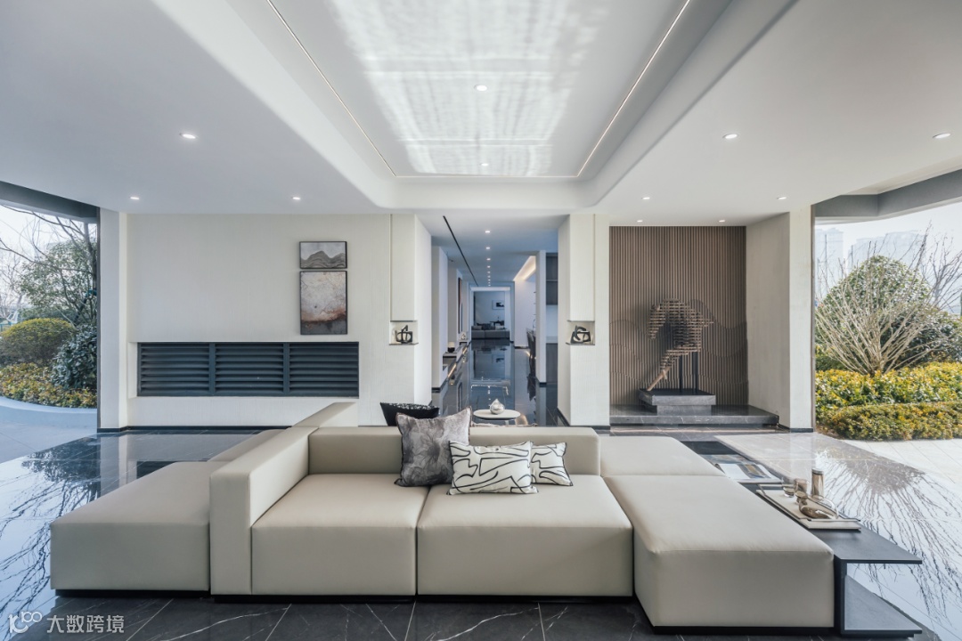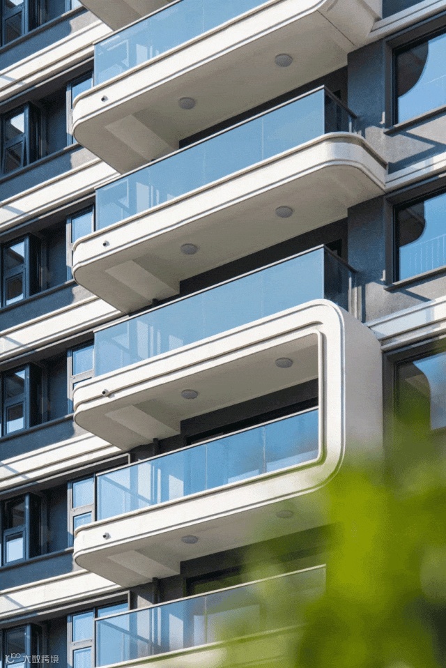 阳光的照耀下,立面色调整体协调又不流于沉闷,在阳光反射时更能凸显立面的质感。雅致的奢适尺度,还原艺术人居。