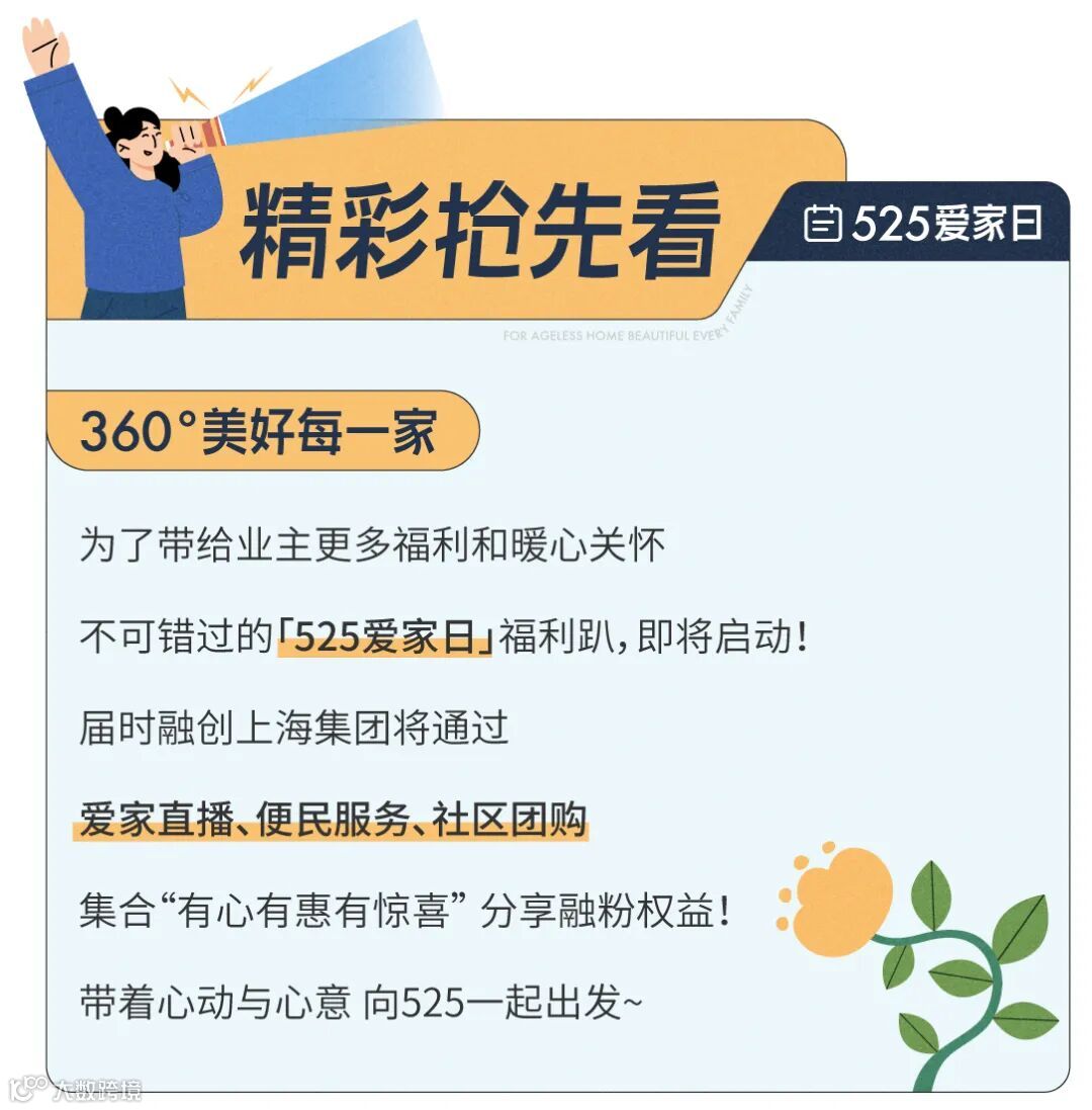 有心意也有福利!爱家行动组织爱家团购会、520融粉权益日、房屋信息整合、乐园福利释放等,让业主实实在在收获各项福利。同时在融创会小程序平台,也将不断发起#全网征集爱家知识博主#等超话,根据话题分享各种技能,参与爱家活动打卡,成为头号融粉&知识博主,更将获得融币积分、爱家权益券、爱家惊喜礼包等福利,一手解锁爱家荣誉N次方!