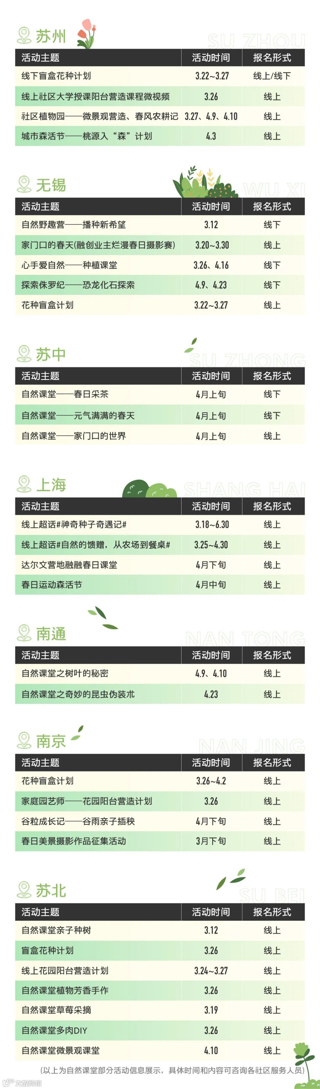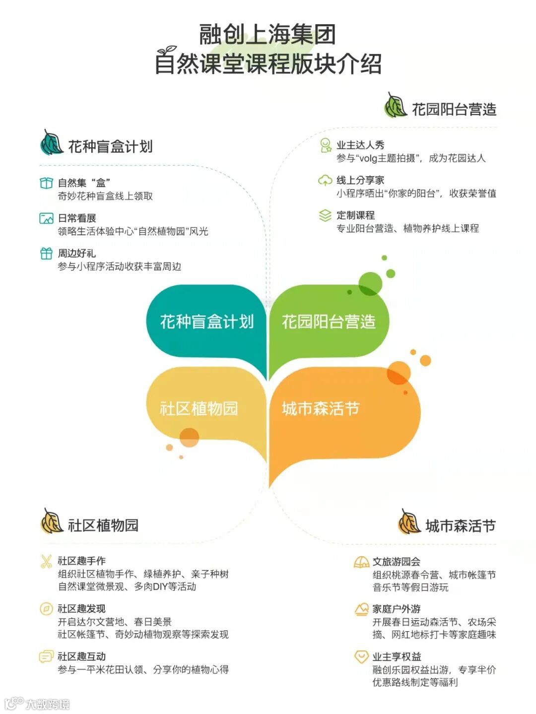 循着更丰盛的层次,打开生活每一面春日限定,今年融创上海集团 · 2022自然课堂正式启动!从孩子探索到全龄参与、从线上到线下、从社区到城市· · · 我们希望消除生活中围起的栅栏,带来【花种盲盒计划】、【花园阳台营造】、【社区植物园】、【城市森活节】四大模块自然体验,让更多人走进“家门口的大世界”!所有新鲜绿意已经准备就位,这场奇妙之旅Let‘s深度游吧!
