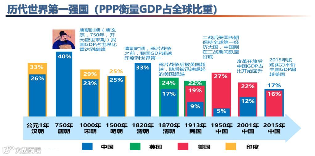 从上图可看出,当国家和平稳定时,国民会自发地创造财富。所以按照购买力评价,2015年中国已经超过美国了。有经济学家认为2050年中国经济是美国的1.5倍至2.0倍,那么一定会有企业能够跟随这种社会财富的增长,并且发展得很好。