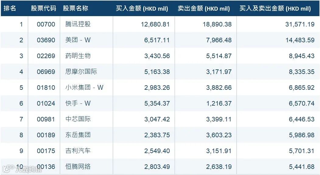 港股通(深) 十大成交活跃股