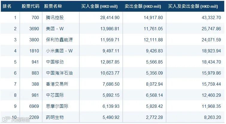 成交活跃股票方面,港股通(沪)南下资金前三大成交股是腾讯控股(700)、美团-W(3690)和小米集团-W(1810) ;而港股通(深) 南下资金前三大成交股是腾讯控股(700)、美团-W(3690)和保利协鑫能源(3800)。