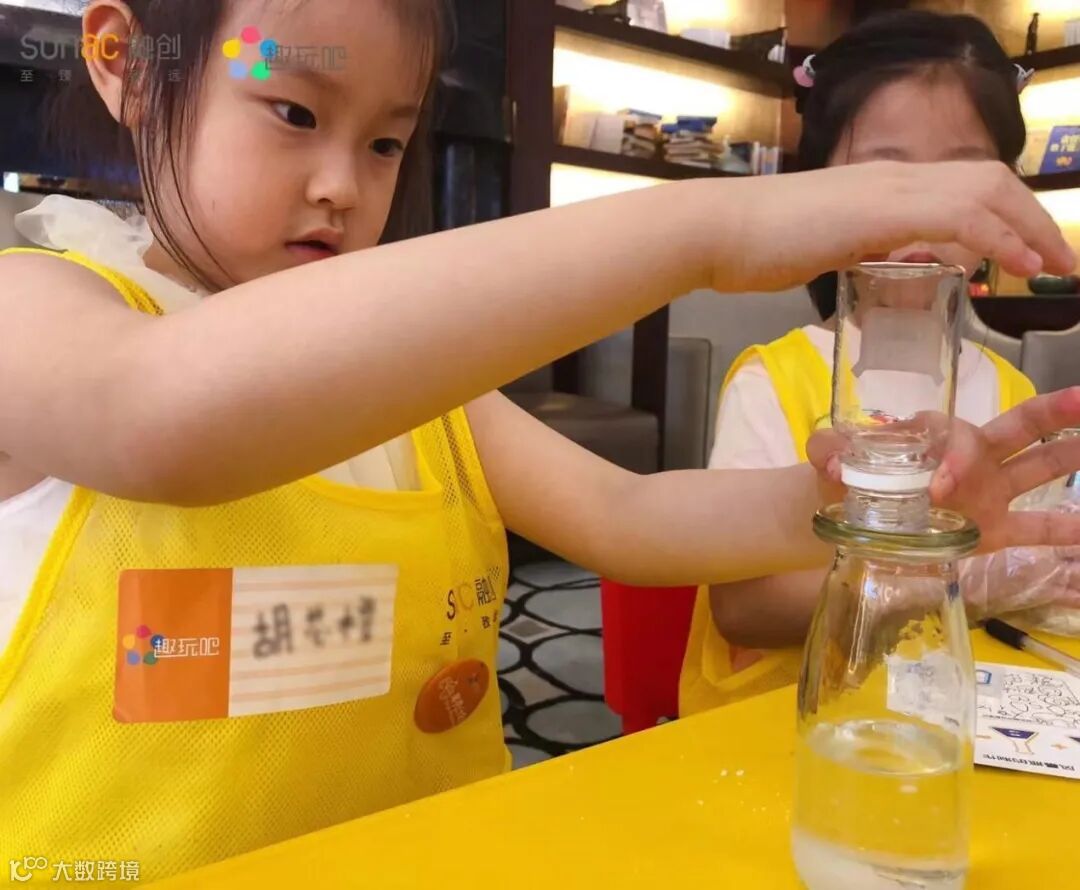 为了让小业主们更加直观的感受气象变化和原理,本次气象科普活动的压轴环节——“DIY风暴瓶”完全打开了小业主的新世界。它是一种可以进行天气预报工具,在密闭的玻璃容器中,装入数种化学物质组成的透明溶液,根据外界温度改变,瓶内会展现出不同型态的结晶。制作风暴瓶之前,博物馆老师先讲述了“小猎犬号”的故事,接着,老师们耐心细致地讲解了制作方法及注意事项,经过大概半小时的亲子配合手工,一个个成功的作品终于诞生啦!