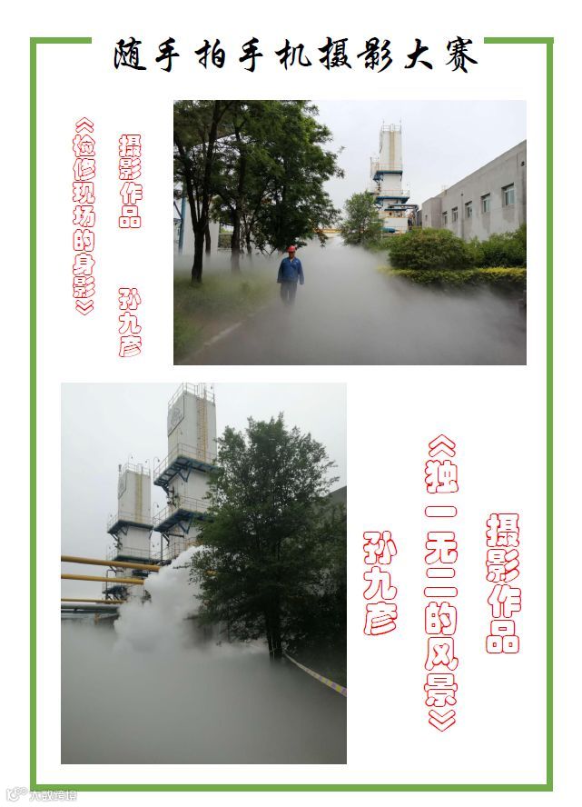 洗化厂空分车间鼓励员工主动发现工作中的美好瞬间并将其定格成永恒,组织开展了以“美丽空分,我的家”为主题手机摄影大赛。通过手机随手拍的形式鼓励员工在镜头中记录下工作中的点点滴滴,通过照片来展现车间属地的优美环境和员工工作生活的美好状态。
